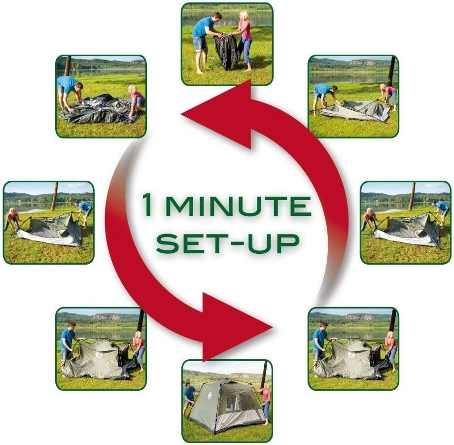 Start your outdoor adventure in minutes with a Coleman® Instant Dome tent. Featuring a revolutionary, spiderlike frame, the Instant Dome’s sturdy steel and fibreglass poles are already attached to the tent for extremely quick and easy pitching in just one minute. A fully integrated groundsheet and high-performance fabrics ensure you and your family enjoy clean, dry and bug-free camping.