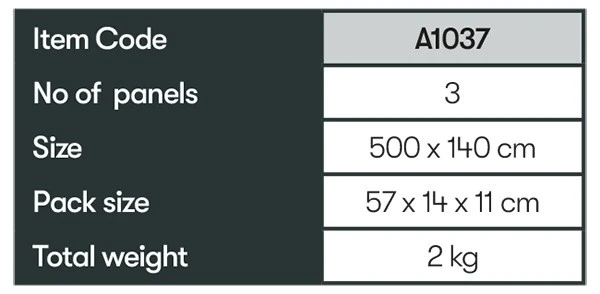 Made to compliment the Quest Falcom awnings, this uses the same colour way and design of these awnings to be the perfect partner, it also delivers on the Falcon range by the extremely lightweight nature of the windbreak and tiny pack size.